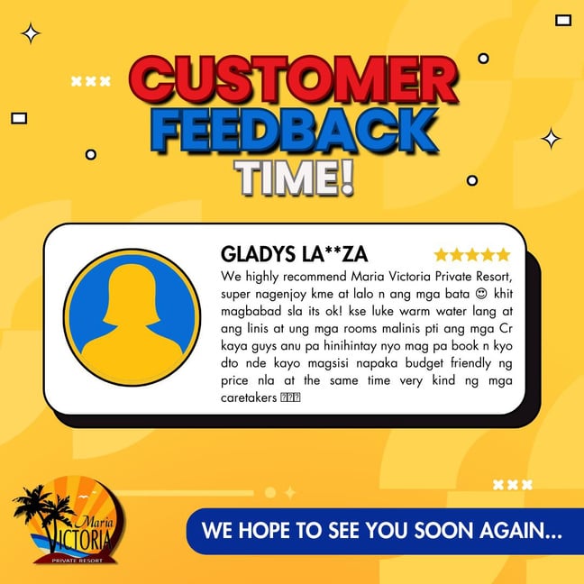 Maria Victoria Private Resort is a chill, pet-friendly resort located just a few hours from the metro. It's the perfect place to escape the hustle and bustle of city life and enjoy a relaxing vacation with your loved ones, or to host a low-key team-building event. Our resort is just a quick drive away from Pansol, Calamba, Laguna. It's a budget-friendly yet very beautiful place that's perfect for a weekend getaway.
